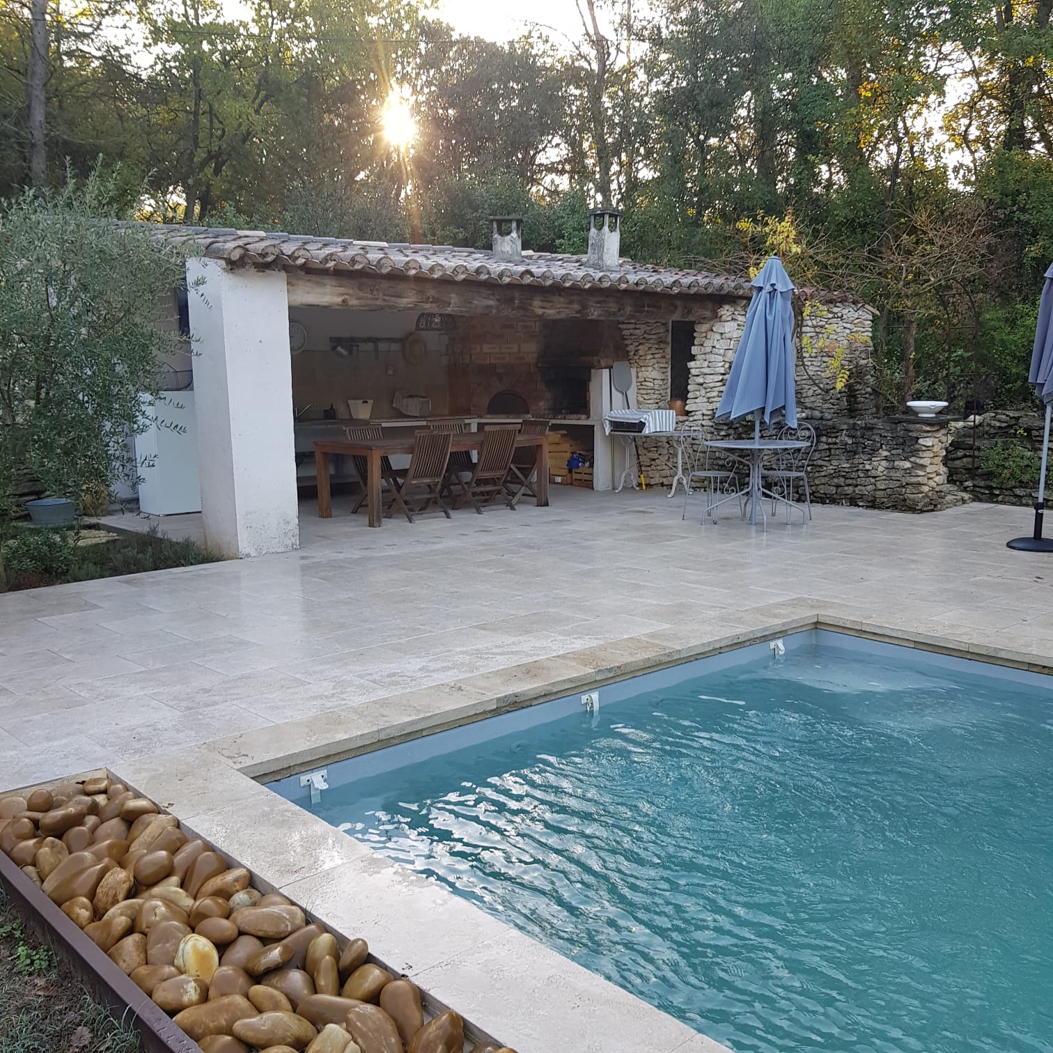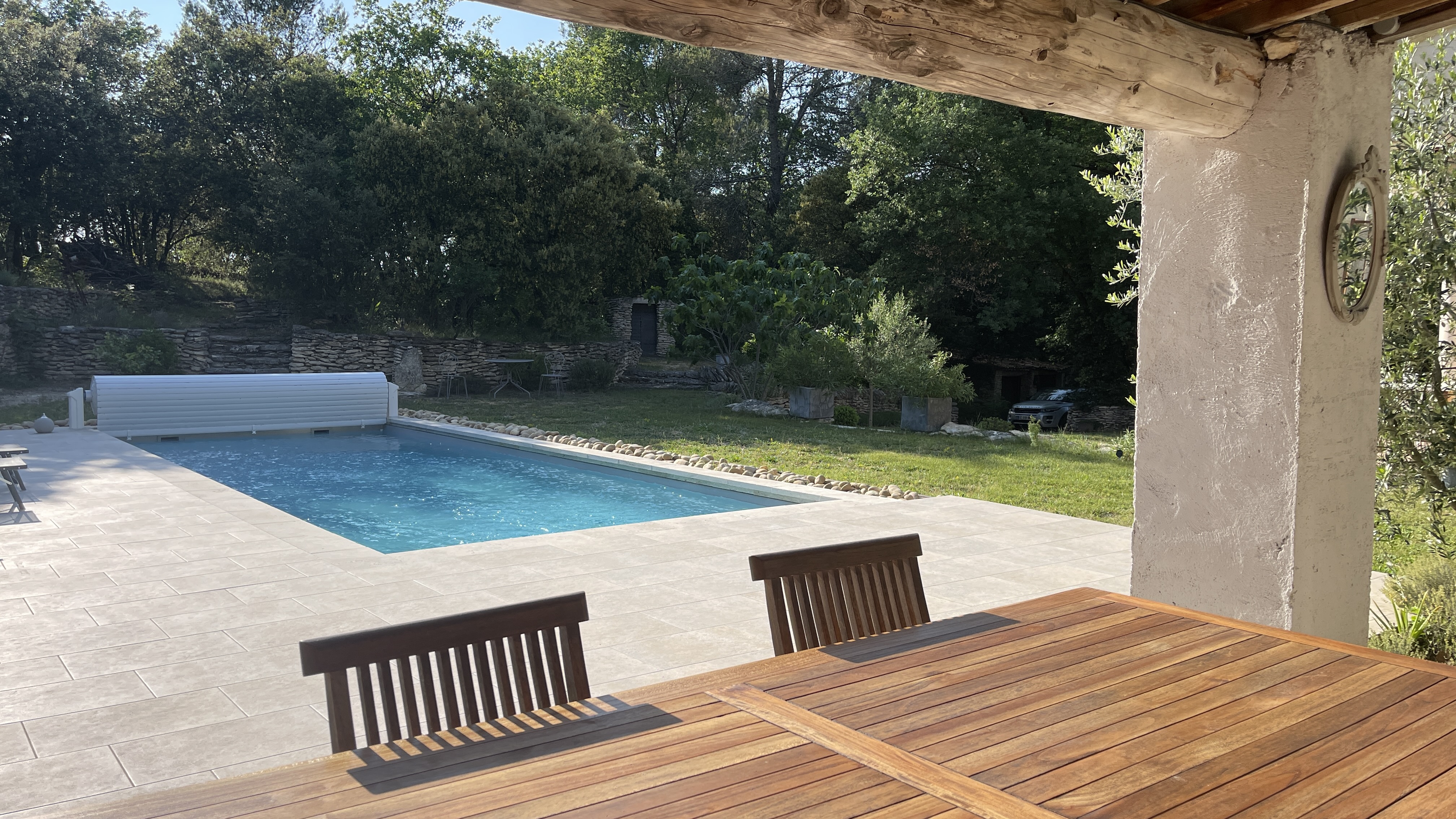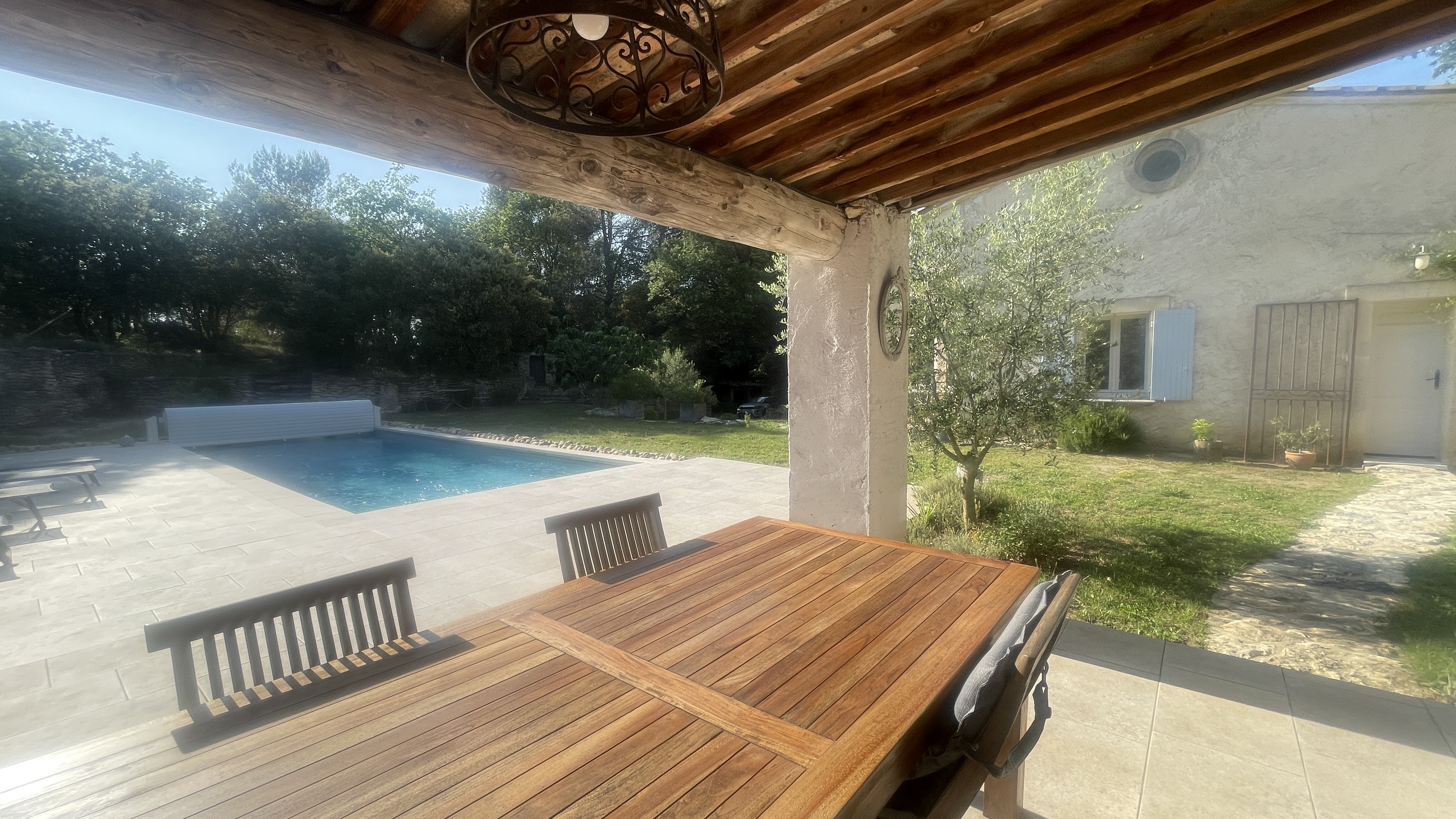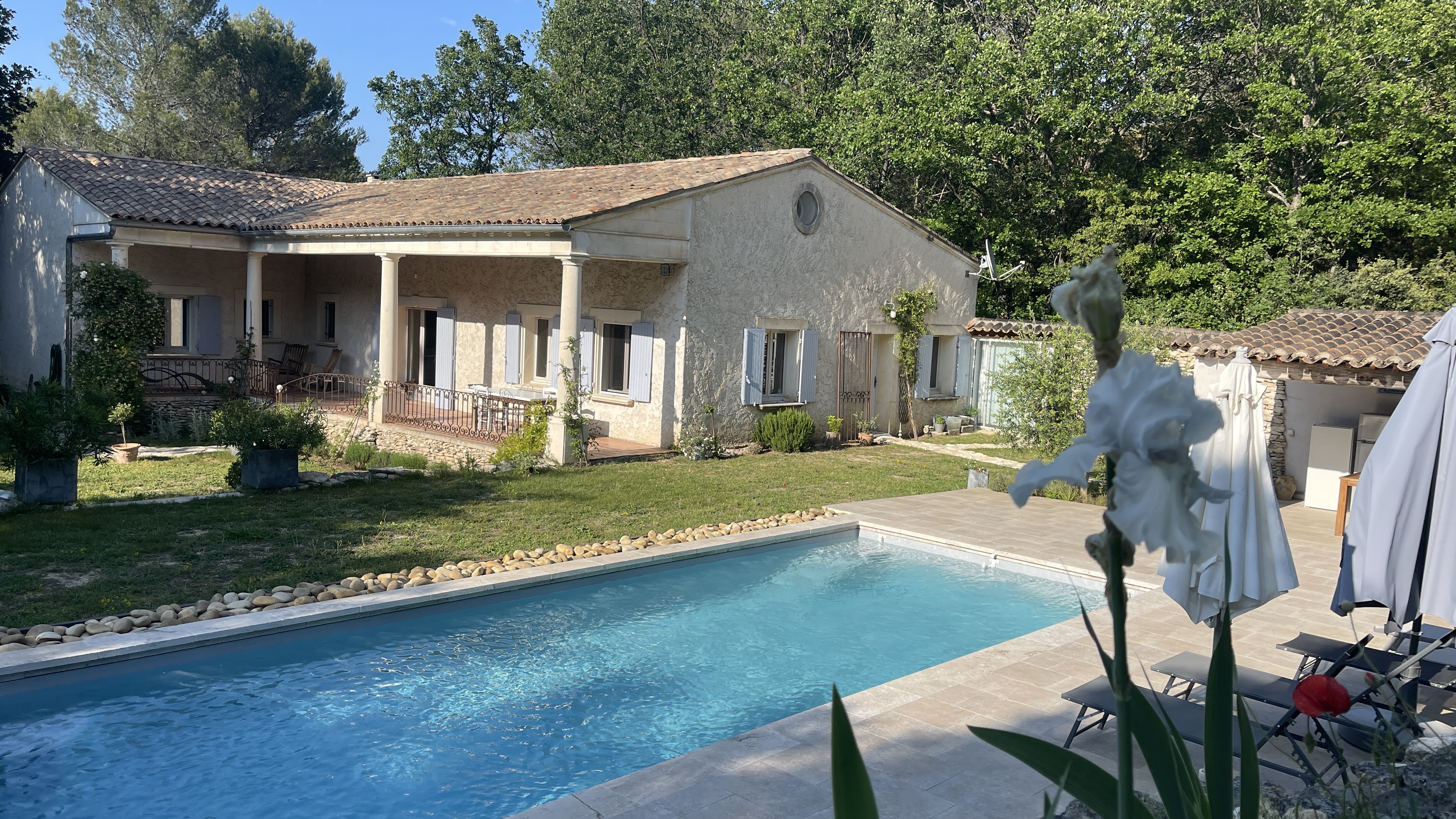 Couleur Luberon vous présente cette propriété située dans le joli village de Ménerbes, en pleine nature, sur un terrain paysagé d’environ 3.000 m2, avec piscine de 10,40 x 4,25 entièrement refaite avec volet roulant électrique, magnifiques plage et pool house avec cuisine d’été, barbecue, four à pizza, garage indépendant en pierres sèches, petite dépendance également en pierres pour ranger le matériel de jardinage.